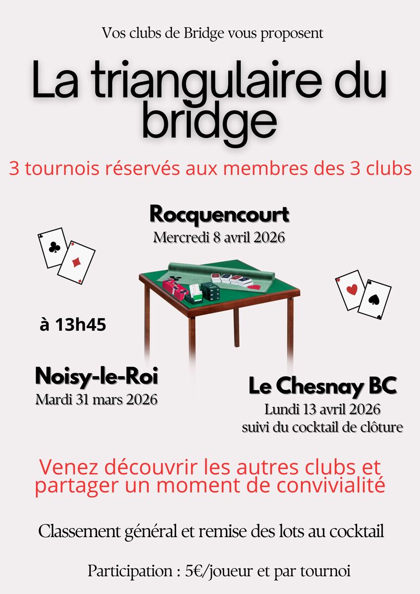 La triangulaire du bridge : 3 clubs et 3 tournois communs